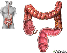 Colitis ulcerosa crónica o enfermedad de Crohn, aproximadamente 30% a partir de los 25 años si el colon entero está afectado.