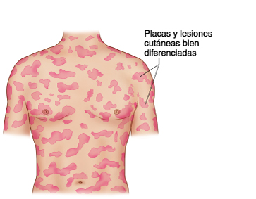 Información: Las micosis fungoides y el síndrome de Sézary (MF/SS) son neoplasias de linfocitos T malignos que poseen generalmente el fenotipo de superficie de las células auxiliares/inductoras. Estos neoplasmas inicialmente se presentan como complicación de la piel, por lo que se han clasificado como linfomas cutáneos de células T. La clasificación Revised European-American Lymphoma (REAL) los incluye como linfomas de células T de grado bajo, a distinguir de otros linfomas de células T que afectan la piel tales como linfomas anaplásticos de células grandes(positivo a CD30), periféricos de linfoma de células T (CD30 negativo, sin afectar la epidermis), linfoma/leucemia de células T en adultos usualmente con compromiso sistémico), o linfoma de células T con paniculitis subcutánea.[1,2] Estos otros tipos histológicos de linfomas de células T, se analizan en otro sumario del PDQ. (Ver el sumario del PDQ sobre el Tratamiento del Linfoma no Hodgkin en adultos.) Además, cierto número de trastornos benignos o muy indolentes, podrían confundirse con la micosis fungoides. Por tanto, es sumamente importante el consultar con un patólogo con experiencia en distinguir este tipo de trastornos.[3]