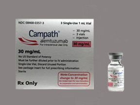 Información: El alemtuzumab (CAMPATH-1H) es un anticuerpo monoclonal humanizado frente al antígeno CD52. El antígeno CD52 se expresa sobre la superficie de los linfocitos B, los linfocitos T, los monocitos y las plaquetas pero no en las células hematopoyéticas madre. El alemtuzumab ha sido desarrollado para el tratamiento de enfermedades malignas linfoides, incluyendo el linfoma no de Hodgkin, el linfoma linfocítico crónico, la leucemia prolinfocítica y el linfoma de células T (micosis fungoide).