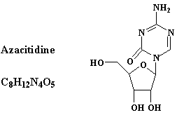 - Anticanceroso inhibidor de la síntesis de ADN y proteínas. La azacitidina es un análogo de pirimidina, por lo que podría interferir con las funciones de otras bases pirimidínicas. Si bien se desconoce su mecanismo de acción en procesos tumorales hematológicos y cuadros mielodisplásicos, se han sugerido los siguientes mecanismos de acción: