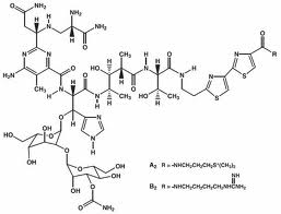 Familia de glicopéptidos sintetizados por el hongo Streptomyces verticillis. Actúan produciendo roturas en las hebras del ADN de manera específica. La susceptibilidad a la bleomicina es máxima en fase G2 o mitosis, pero también actúa en la fase G1.
