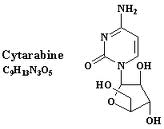Información: La citarabina es un agente antineoplásico específico de una fase del ciclo celular, que afecta sólo a las células durante la fase S de la división celular. En el interior de la célula, citarabina es convertida en citarabina-5’-trifosfato (ara-CTP), que es el metabolito activo. El mecanismo de acción no está comprendido totalmente, pero parece ser que el ara-CTP actúa fundamentalmente a través de la inhibición de la síntesis de ADN. La incorporación al ADN y al ARN puede contribuir también a la toxicidad de citarabina. Citarabina es citotóxica para una amplia variedad de células de mamíferos proliferantes en cultivo.
