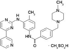 Es el primer miembro de una nueva clase de medicamentos, que actúan por medio de la inhibición específica de la enzima tirosín kinasa, denominados inhibidores de la tirosina quinasa, que se presenta como característica particular de un tipo de célula cancerosa, de modo que ejerce inhibición no específica y destruye todas las células en división activa.