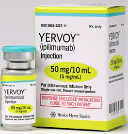 De momento, de todos los fármacos que se están estudiando en ensayos, Yervol (el nombre comercial de ipilimumab, comercializado por Bristol-Myers Squibb) es el primero que ve la luz. Según Richard Pazdur, director de la oficina de evaluación de tratamientos anticancerígenos de la FDA, “es la primera terapia aprobada por la FDA que demuestra claramente que alarga la vida de las personas con melanoma avanzado que puede invadir otros órganos (metástasis)”.
