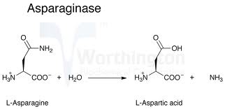 Información: La L-asparaginasa, cuyo Número EC es 3.5.1.1., es una enzima que tiene aplicación en la terapéutica hematológica y antineoplásica y que posee la capacidad de inhibir la activación de la asparagina por medio de una catalización hidrolítica. Bioquímicamente es una L-asparagina amidohidrolasa.