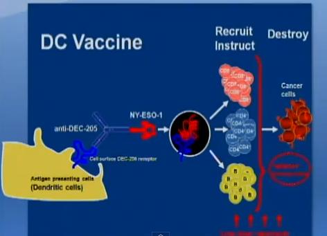 Uso de la Células dendríticas (CD) para presentar antígenos (Complejo mayor de histocompatibilidad II) a los linfocitos T, ya sea mediante la unión Anticuerpo-Antígeno o la unión del Antígeno en la leucoferesis (procedimiento por el cual la sangre pasa a través de una máquina especial que extrae los glóbulos blancos).
