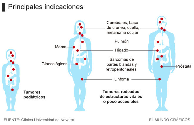 Más de 140.000 pacientes han sido ya tratados con esta terapia en todo el mundo. Proporciona resultados muy prometedores con mínimos efectos secundarios en tumores pediátricos, melanoma ocular, en tumores de la base del cráneo, cerebrales, de cabeza y cuello, linfomas y los sarcomas espinales y peritoneales.