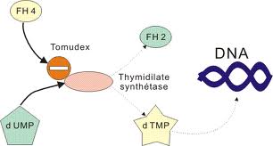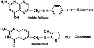 Un análogo es el raltitrexed (Tomudex), derivado del ácido glutámico que inhibe la timidilato-sintetasa, enzima necesaria para la síntesis de ADN.