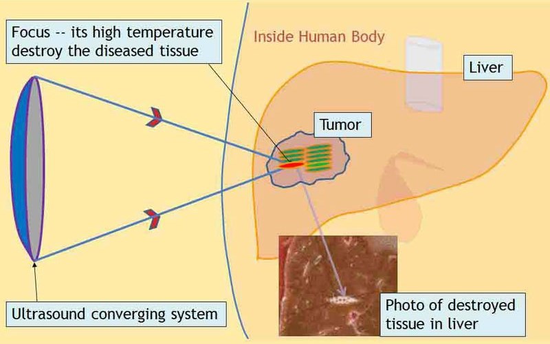 Para mejorar el pronóstico en pacientes con tumores sólidos, se han desarrollado nuevas formas de tratamiento menos invasivas por ablación local, como el ultrasonido focalizado de alta intensidad, en inglés high-intensity focused ultrasonography (HIFU). Éste consiste en focalizar la energía de un haz de ultrasonido de alta frecuencia en un volumen pequeño de tejido sin introducir ningún tipo de dispositivo o aguja en el paciente.